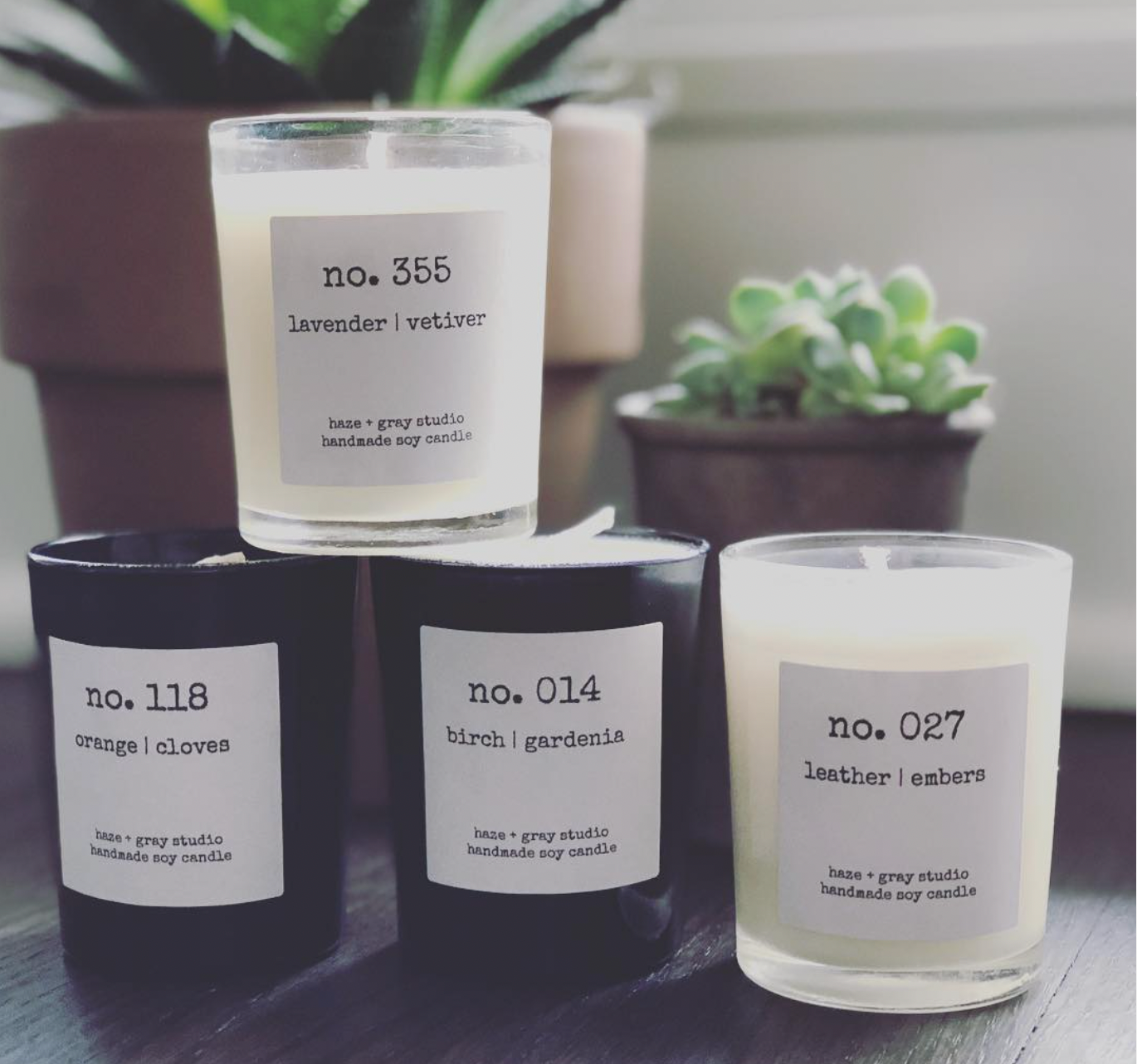 Haze + Gray Studio is a woman owned and operated small business in the north suburbs of Chicago. We believe in creating the safest burning candles that have amazing scents that use 100% soy wax, all cotton wicks and all of our fragrances that we use are phthalate free which creates a clean burn.